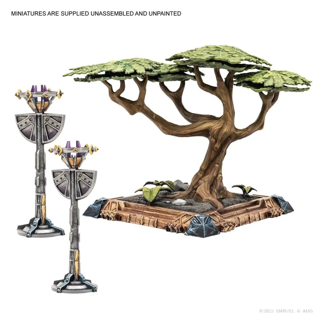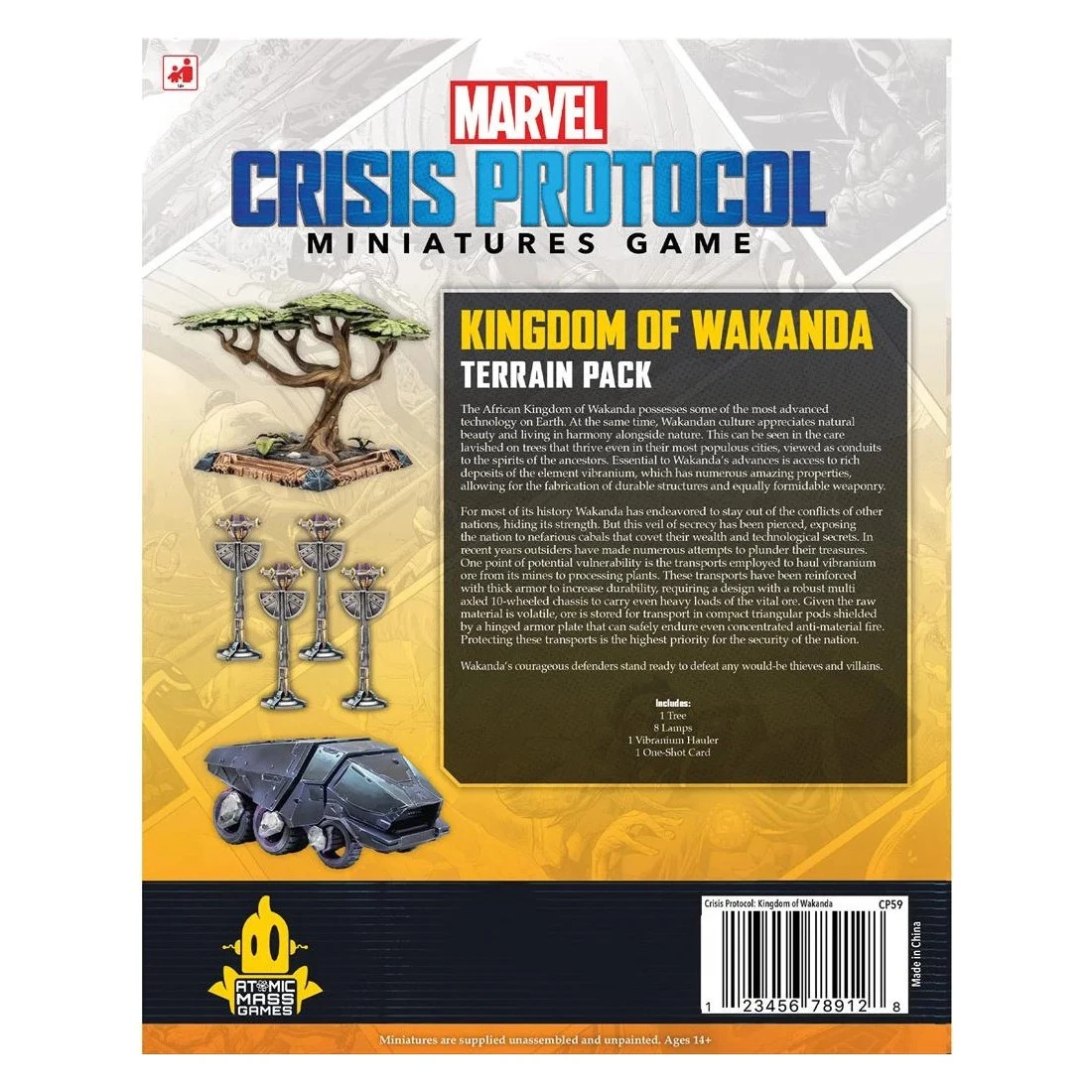Comme cette matière première est instable, le minerai est stocké dans de petites capsules triangulaires, renforcées par une plaque de blindage articulée qui peut encaisser les coups d’un Hulk furieux. Cette extension pour Marvel Crisis Protocol contient des éléments de décors parmi lesquels 1 arbre, 8 lampadaires et 1 camion de vibranium.