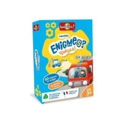 Mes premières énigmes – Véhicules un jeu d’observation et de déduction. 3 images vous sont dévoilées une après l’autre pour deviner un mot. Dès 3 ans.