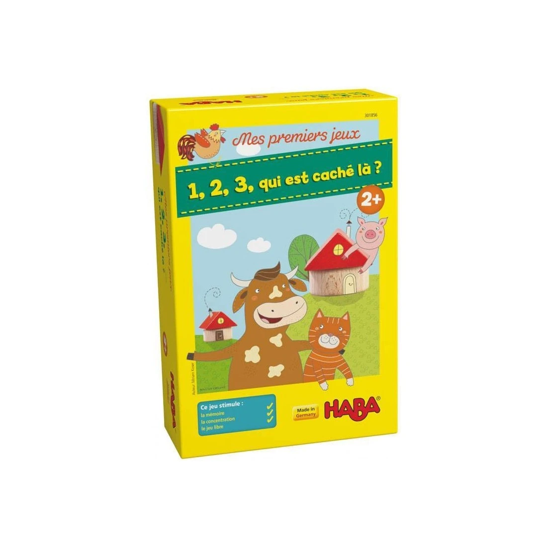 Les animaux de la ferme ont envies de jouer avec toi! 1,2,3, Qui est Caché là? est un jeu de la gamme Mes Premiers Jeux où il te faut les retrouver. Dès 2 ans.