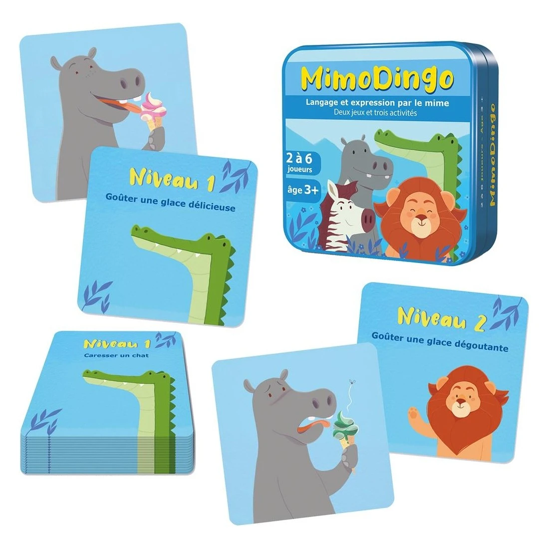 Mimo Dingo est pédagogique : les joueurs doivent reconnaitre des situations, les mimer ou les expliquer avec des phrases correctes.