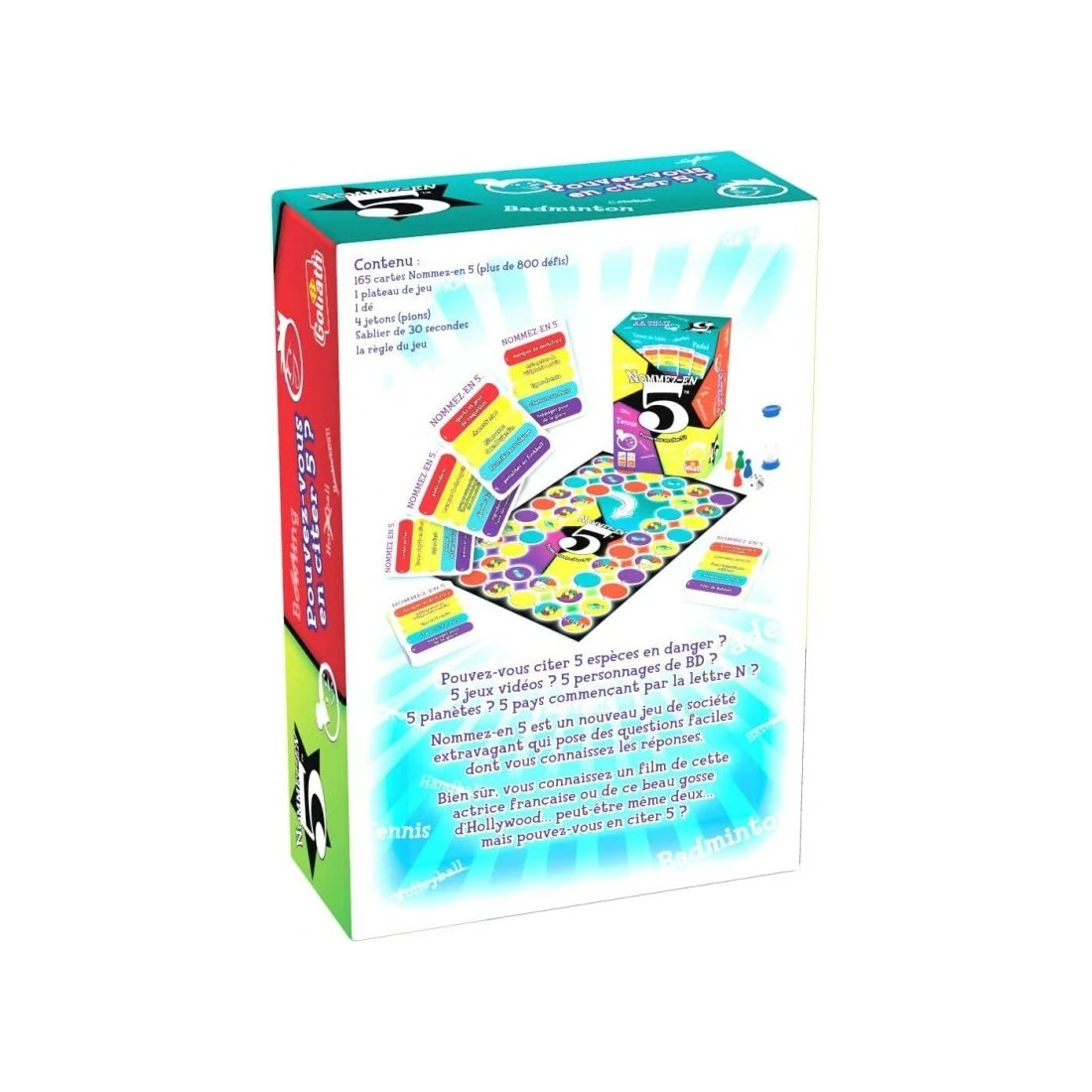 Pouvez-vous en nommer 5 ? Pouvez-vous citer 5 choses qui pourraient faire éternuer une personne en 30 secondes ? Et pourquoi pas 5 papas de la télé ou 5 jeux vidéo ? Des fruits ou des légumes commençant par un « a » ? Nommez-en 5 est le jeu de société délirant qui pose les questions faciles dont vous connaissez les réponses.