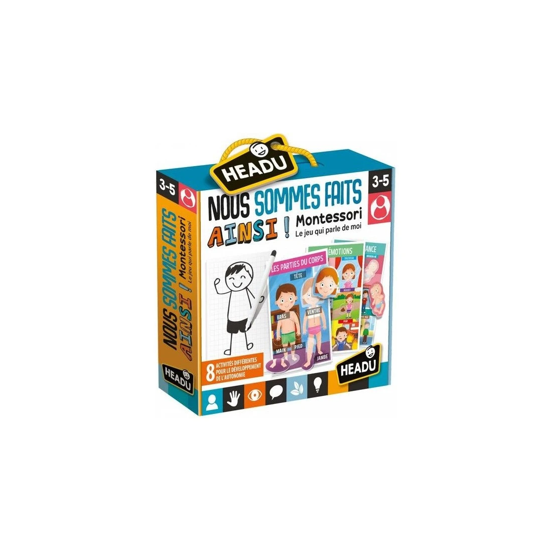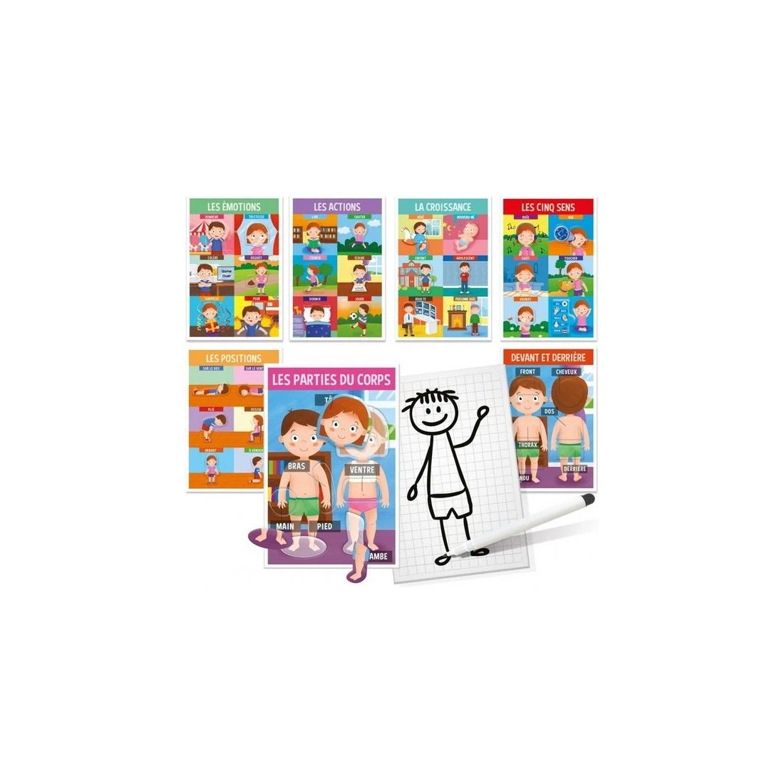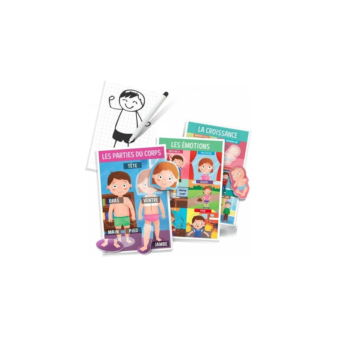 Un jeu à encastrements amusant pour apprendre à reconnaître sa propre identité physique et émotionnelle. L’enfant découvre les parties et les positions du corps, les cinq sens, les expressions du visage et bien d’autres choses encore. Il apprend également à représenter le corps en le dessinant.