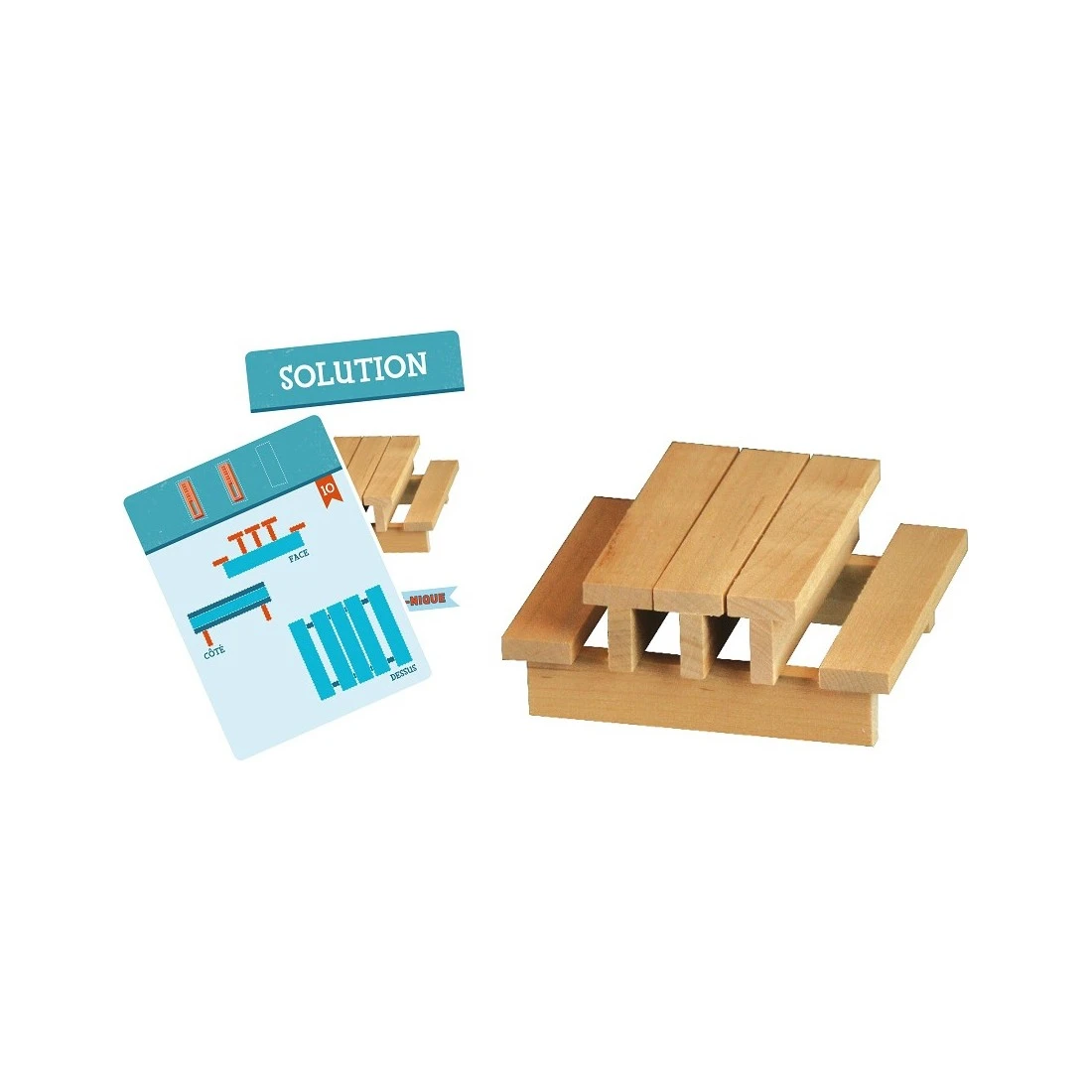 Kéva Petit Architecte est un jeu de construction avec des planchettes comme Kapla, mais à la différence que dans ce jeu, l’enfant va devoir interpréter un plan en 2D pour réaliser la figure imposée.