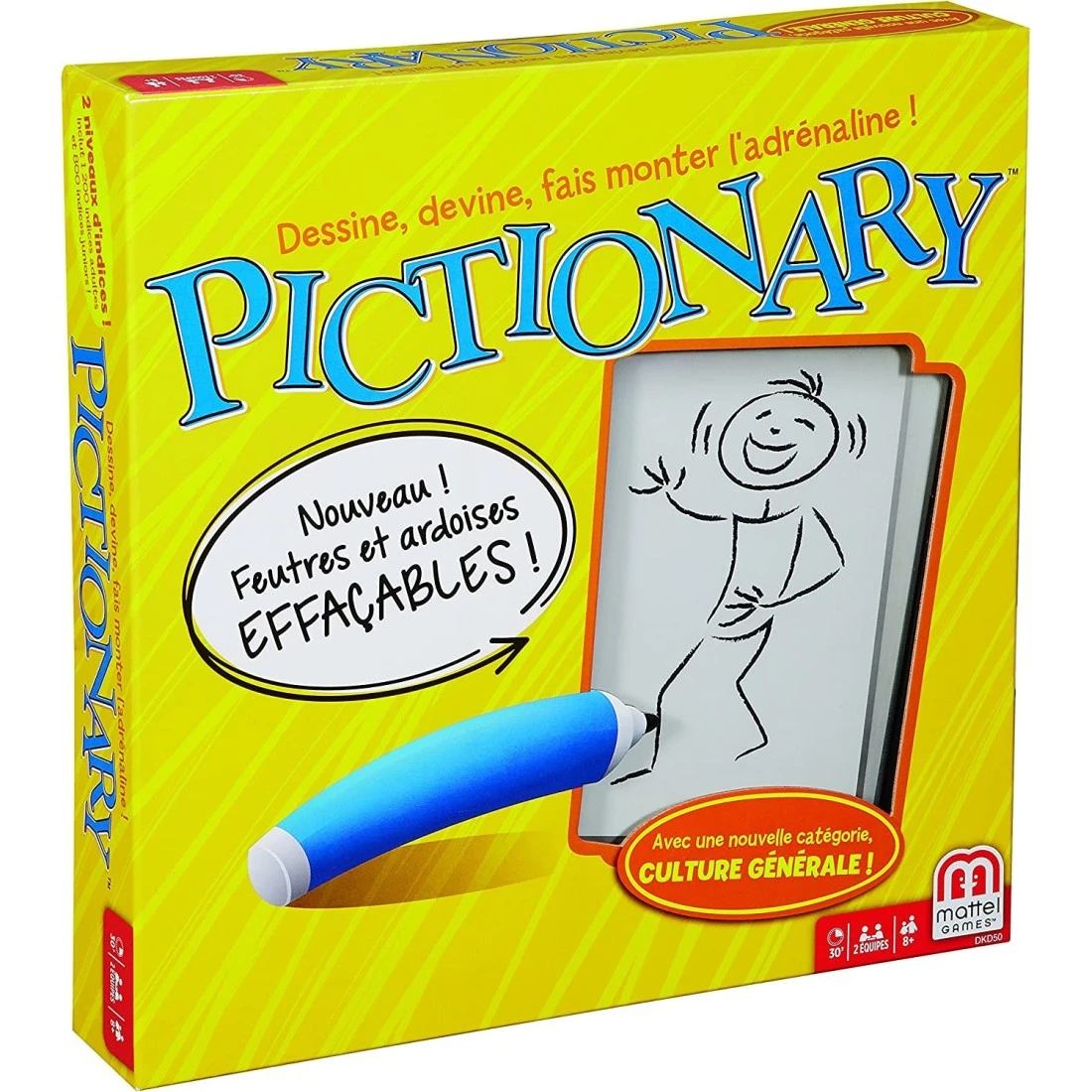 Dans ce jeu classique, les participants sont parfois plus drôles que les devinettes à dessiner ! Fous rires garantis ! Pictionary comprend désormais deux feutres effaçables, un tableau et de nouvelles cartes mises à jour. Depuis 1985, Pictionary amuse les amis et la famille ! Référence Mattel : MAT-PIC