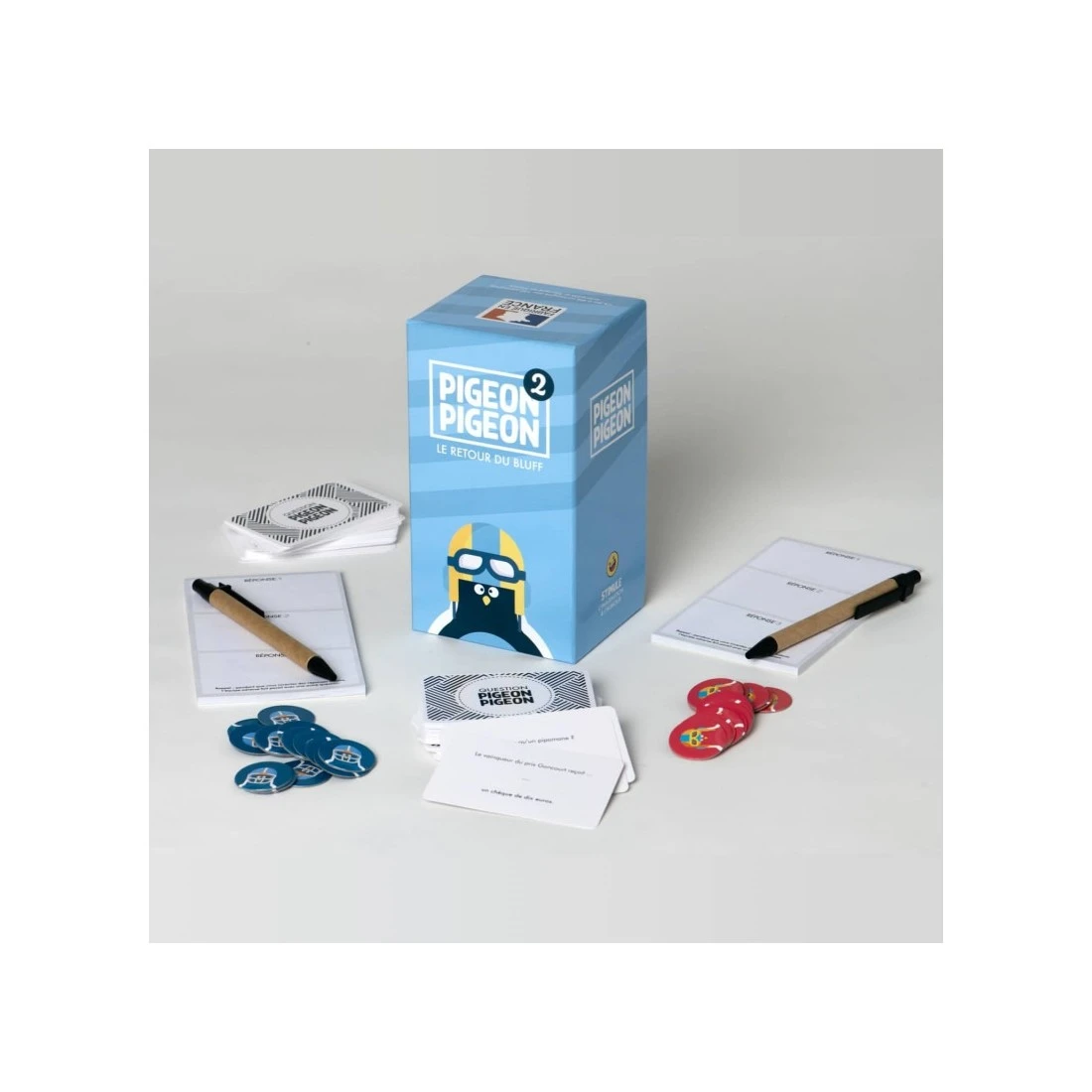 Ce second épisode de Pigeon Pigeon contient 440 nouvelles cartes et peut être joué de manière totalement indépendante au premier opus. Il n’est pas nécessaire d’avoir joué au premier pour pouvoir l’apprécier !