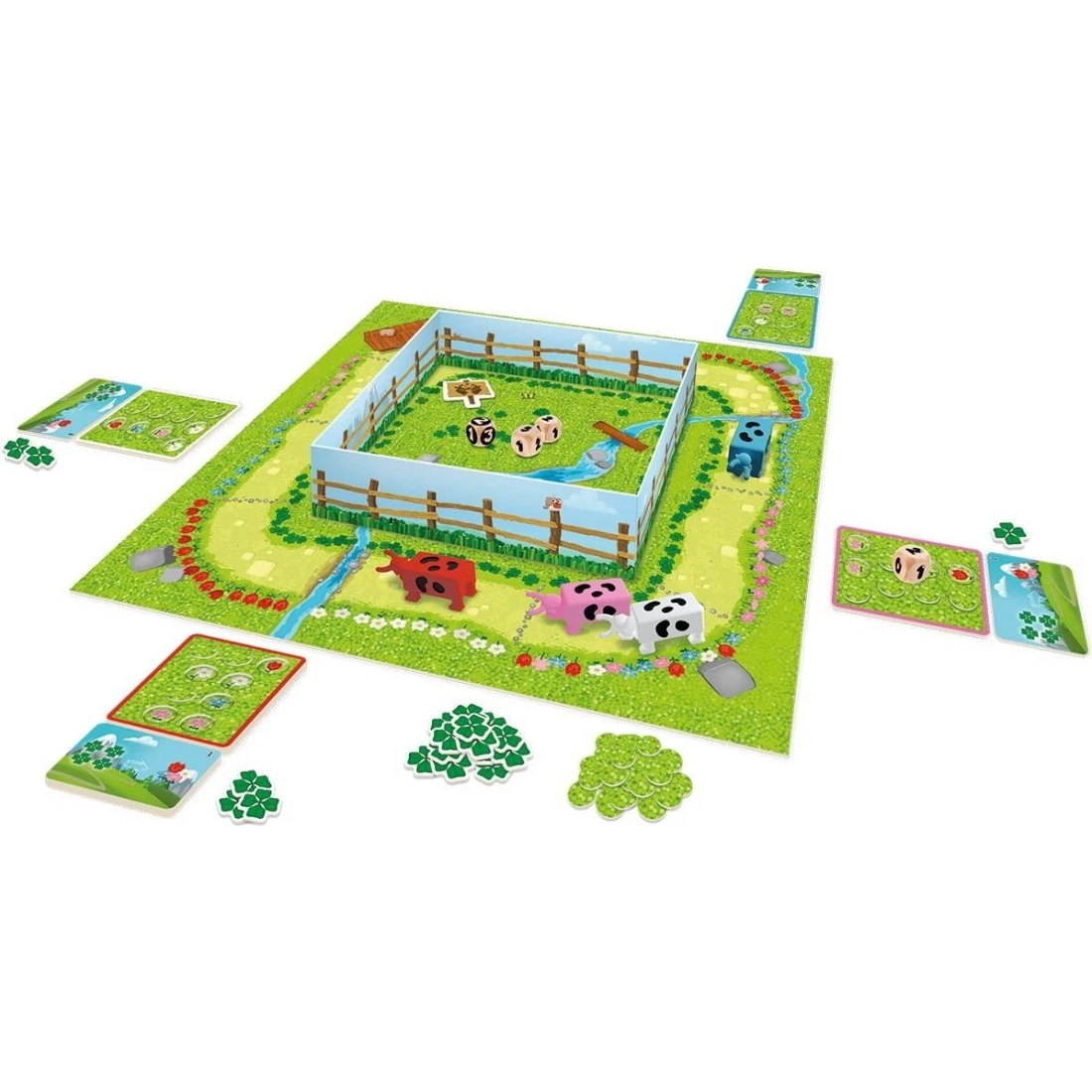 Un premier joueur lance les dés et en choisit un. Sa vache se déplace alors du même nombre de cases. Si la case d’arrivée est vide, il a le choix : brouter la fleur représentée, ou bien un trèfle (la monnaie du jeu, que l’on peut échanger contre des fleurs). Mais si la case est occupée, il doit alors provoquer l’une des vaches présentes. Les duels sont des moments particulièrement amusants dans lesquels le joueur met deux vaches face à face et effectue une pression sur leurs arrière-trains. Elles bondissent alors et retombent sur l’un de leurs côtés. Chaque côté vaut un certain nombre de points, comme les faces d’un dé. Celui qui obtient le plus haut score remporte le duel et gagne autant de trèfles que de points marqués.