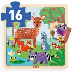 Joli puzzle en bois de 16 pièces sur le thème des animaux de la forêt.