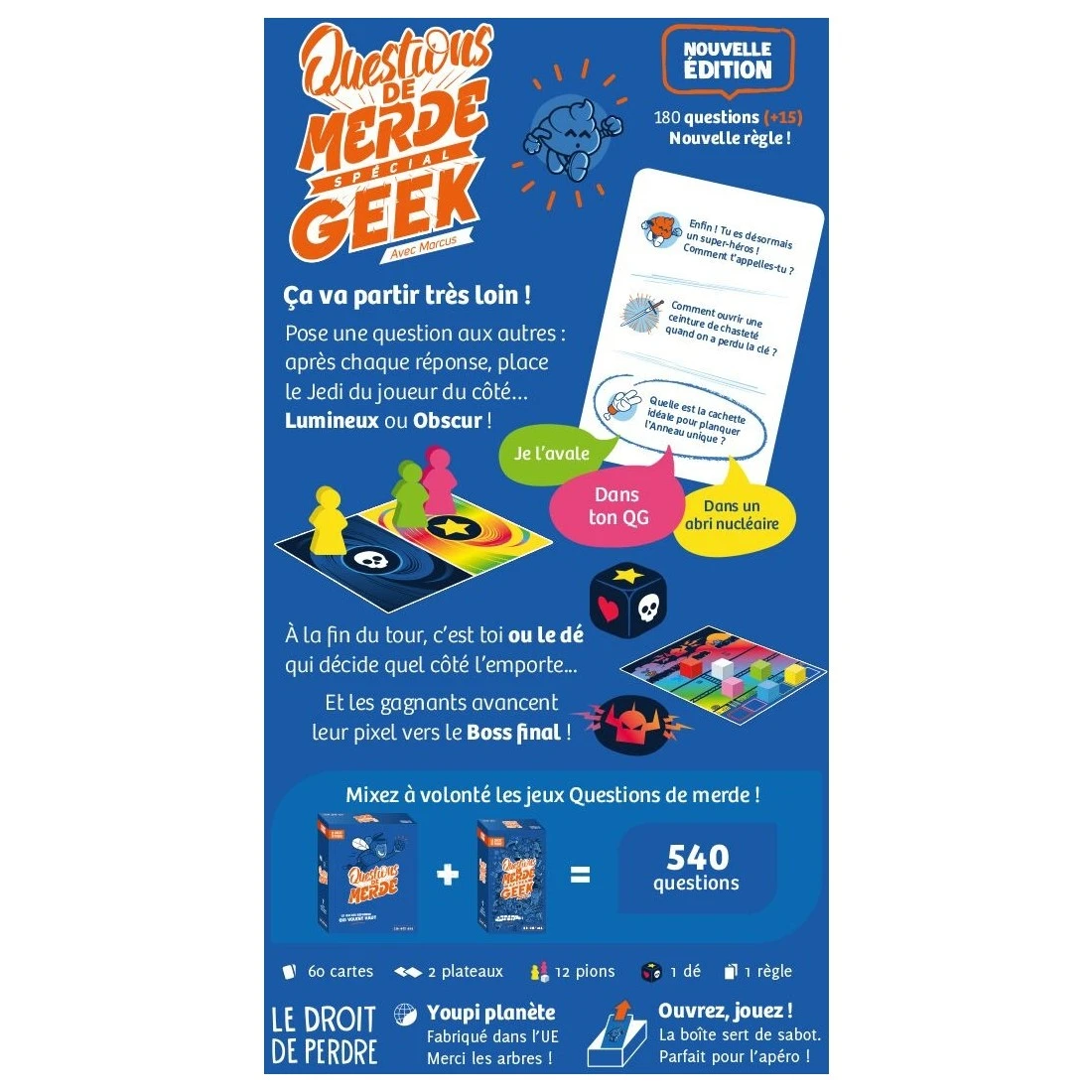 Questions de merde spécial Geek est un jeu d’ambiance où humour et franchise font bon ménage dans un univers imaginaire 2nd degré ! Dès 16 ans.