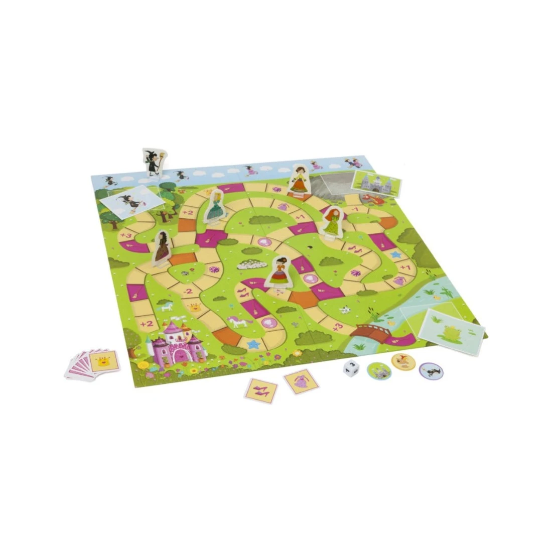 Pour cela, à chaque lancer de dé, à toi de choisir le meilleur chemin pour récupérer au plus vite la tenue complète de princesse : la robe, les chaussures et la couronne. Une fois que tu as les 3 accessoires, tu peux te diriger vers l’un de trois châteaux pour découvrir si le Prince est là.