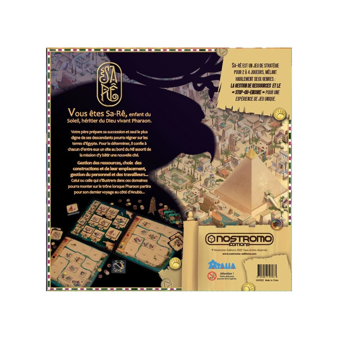 Dans le jeu de gestion Sa-Rê, chaque joueur dispose d’un site de construction, de ressources de base et d’ouvriers qu’il va falloir «motiver» pour disposer d’une production plus rapide et efficace que celle de ses adversaires, mais attention aux révoltes qui peuvent paralyser vos chantiers.