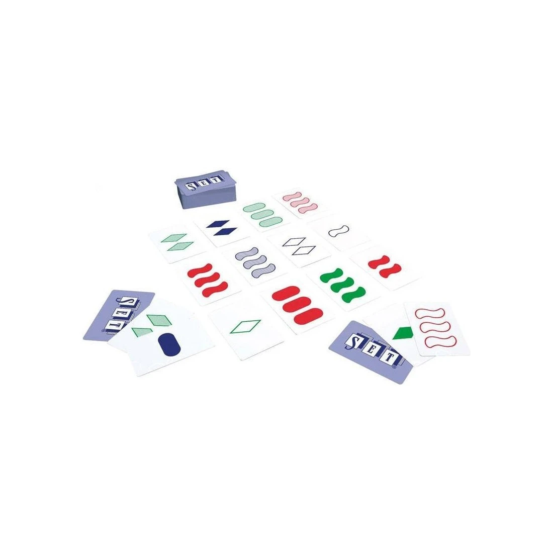 Le but du jeu consiste à observer les cartes exposées sur la table pour être le plus rapide à identifier un Set. Chaque carte présente des symboles qui combinent 4 caractéristiques: Couleur (rouge, vert ou mauve), Forme (ovale, vague ou rectangle), Nombre (un, deux ou trois symboles), Remplissage (plein, hachuré ou vide).