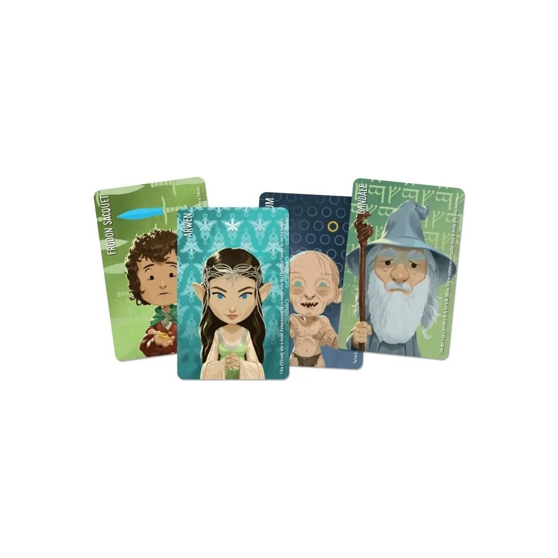 Les fans tenteront de deviner un personnage secret de la Terre du Milieu parmi les 12 révélés au centre de la table. Ils seront aidés par un Narrateur, qui jouera des cartes de sa main en guise d’indices, pour leur suggérer quelles cartes éliminer. Par exemple, si la carte secrète est Frodon Saquet™, vous pourriez jouer Eowyn™, pour suggérer aux autres joueurs que les personnages à éliminer sont des humains, sont de sexe féminin, ou bien Rohirrim™. Ou, vous pourriez jouer Saroumane™, pour indiquer que les personnages à éliminer sont des sorciers, des personnages mauvais, ou ont les cheveux blancs… ce sera aux joueurs de comprendre ce que le Narrateur tente de leur suggérer !