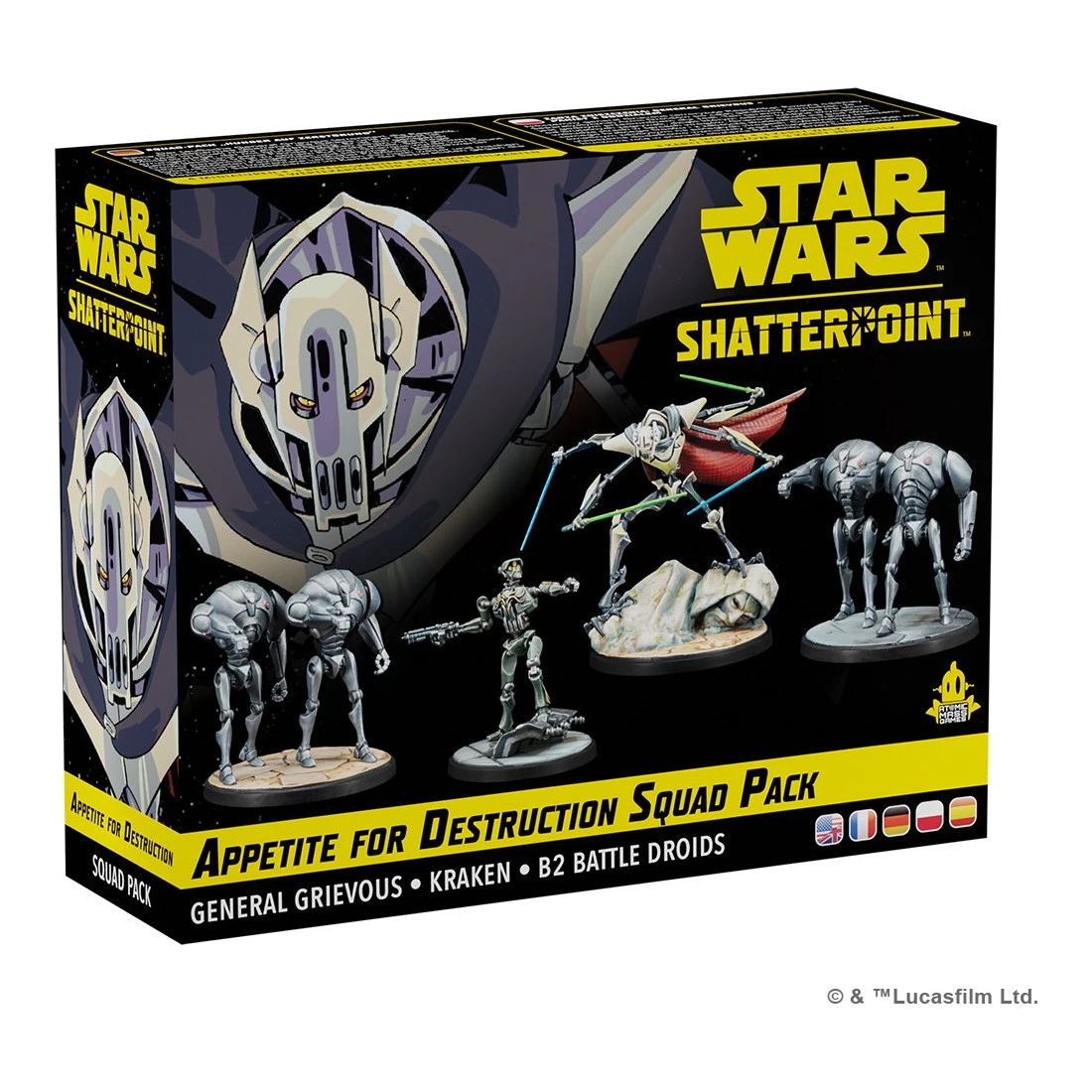 Cette boîte contient une escouade complète pour l’Alliance Séparatiste. Contenu4 figurines (Général Grievous, Kraken Super Droïde tactique, Droïdes de combat B2), 3 cartes Statistiques, 3 cartes Postures de combat, 3 cartes Ordre.