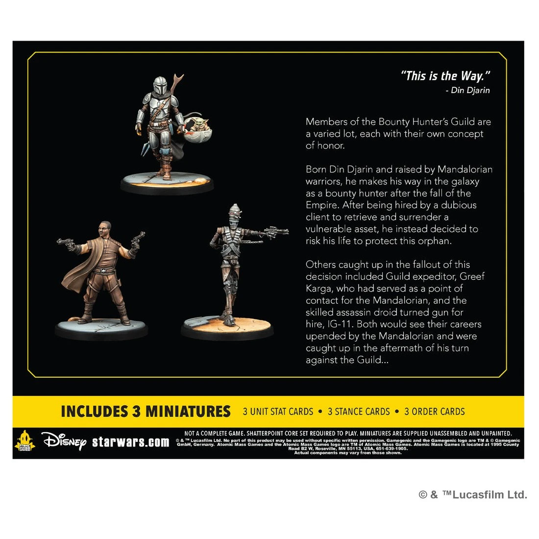 La tristement célèbre guilde des chasseurs de primes arrive dans Star Wars™ : Shatterpoint dans ce nouveau Squad Pack ! Le pack d’escouade de la guilde certifiée amène le Mandalorien dans le jeu en tant qu’unité principale aux côtés de Greef Karga en tant qu’unité secondaire et du droïde assassin Ig-11 en tant qu’unité de soutien.