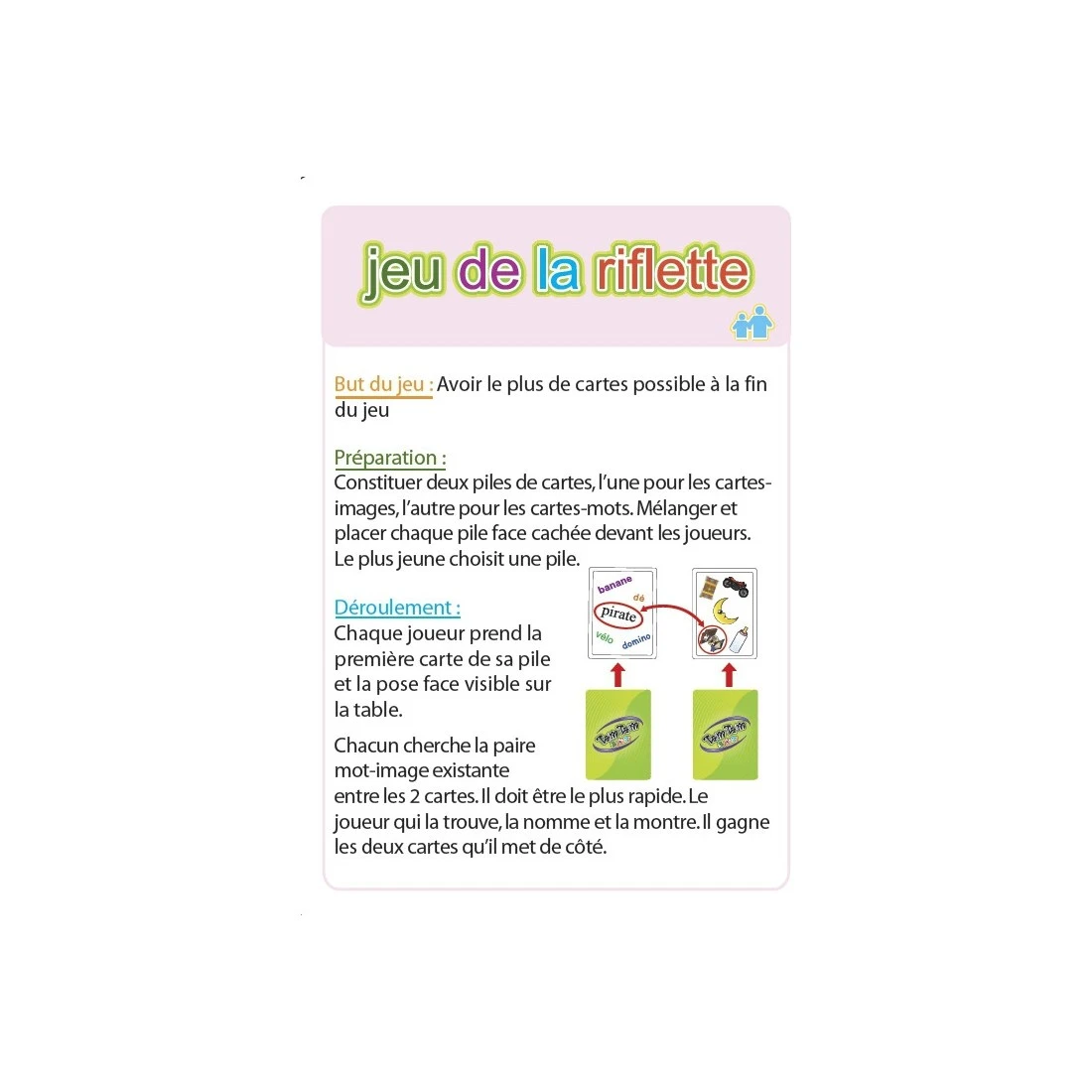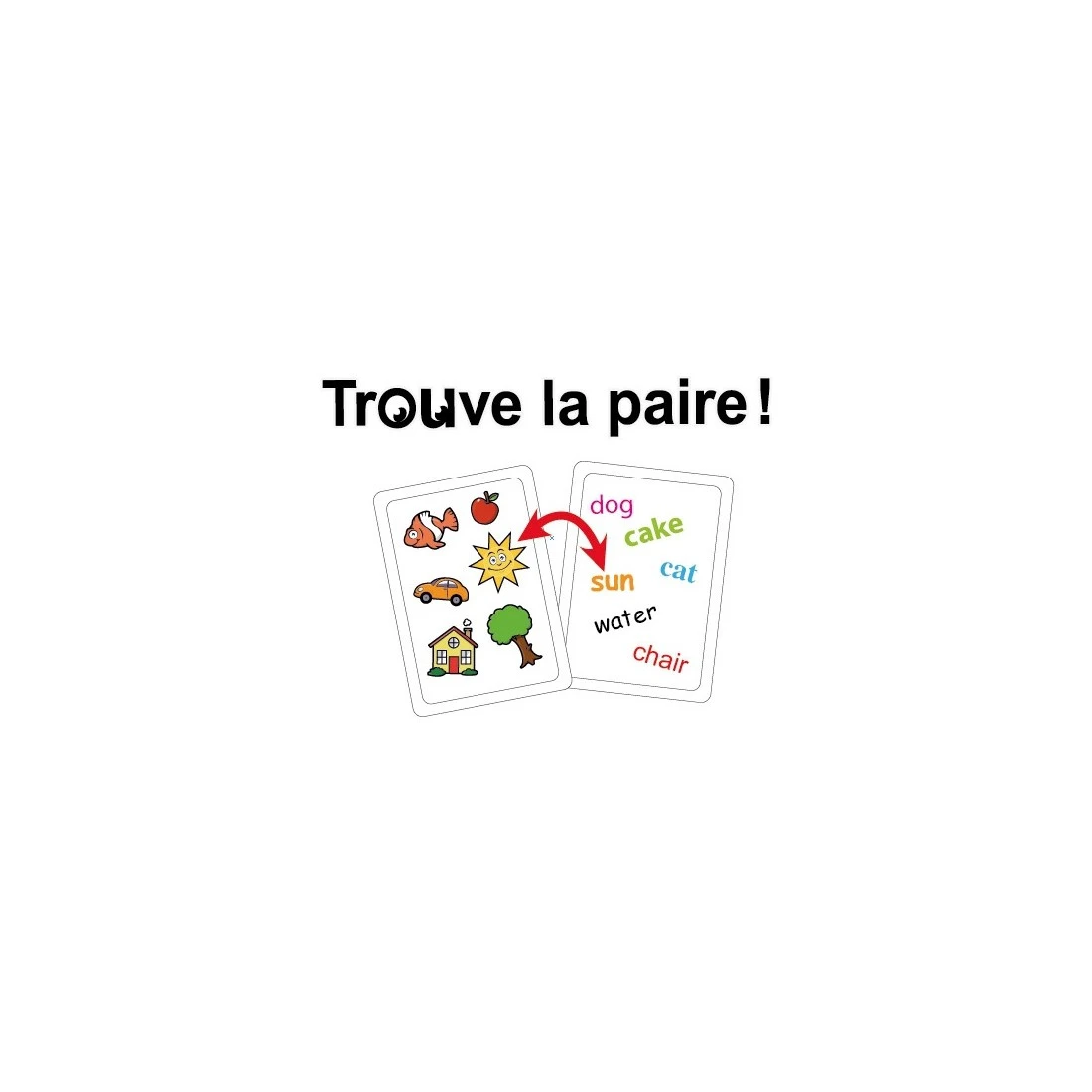 Dans Tam Tam, il s’agit de retrouver l’unique paire image-mot qui existe entre 2 cartes-images et une carte-mots.