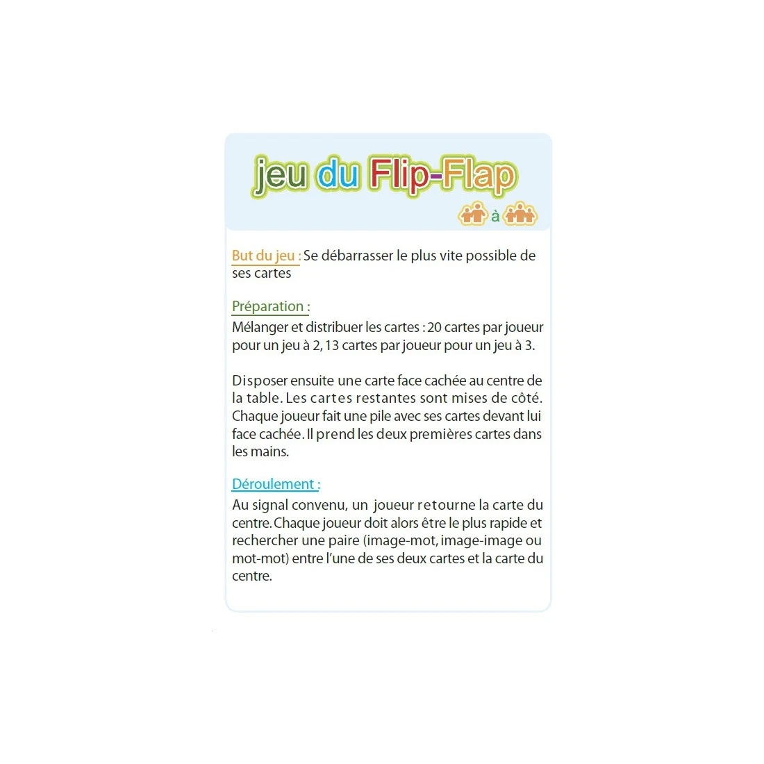 Contenu : – 62 cartes, – 1 carte lexique