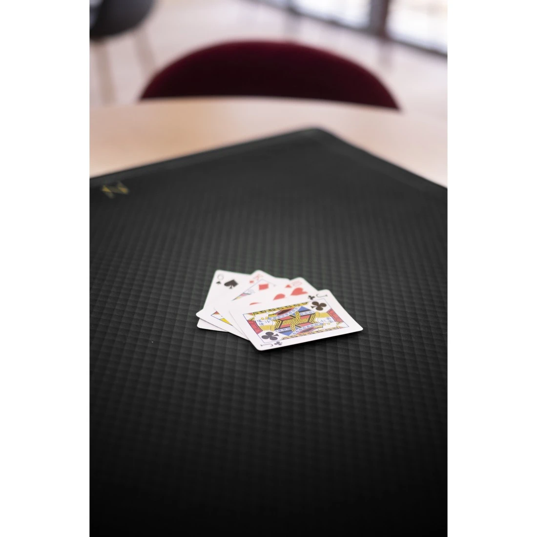 Ce tapis possède une finition luxe grâce au bord galonné, un format tournoi Tarot et les repères points cardinaux.