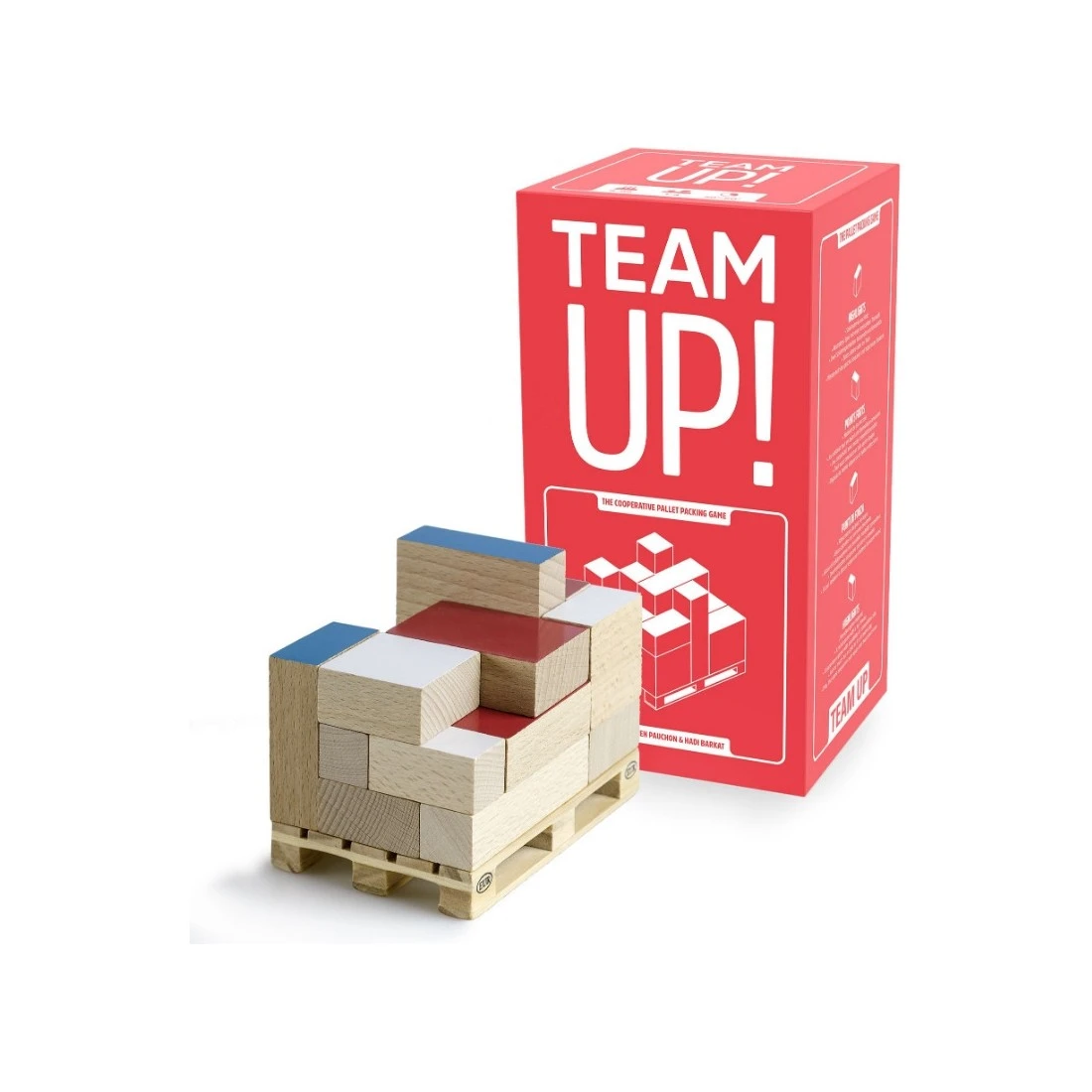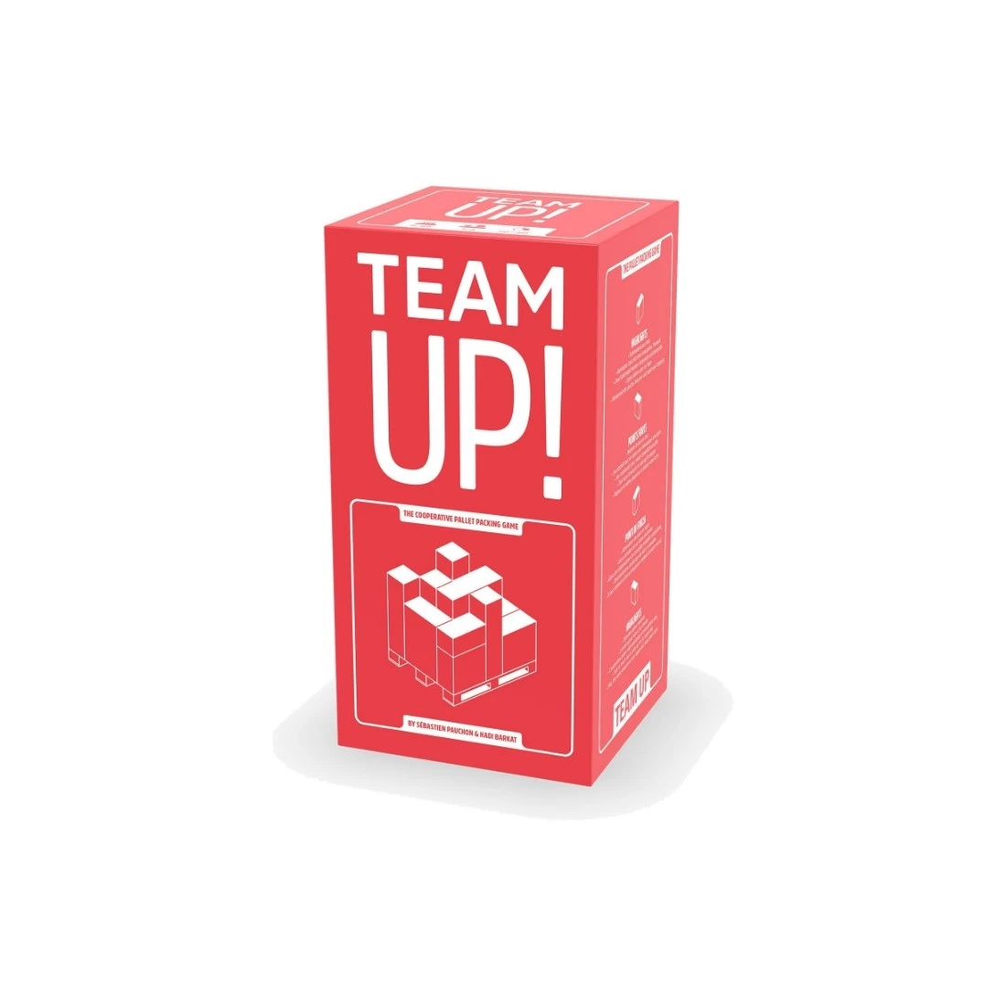 Team Up est un jeu coopératif: vous n’êtes donc pas adversaires mais partenaires. Le but du jeu est d’empiler les cartons sur la palette de la manière la plus compacte possible. Plus il y aura d’étages complets, plus vous marquerez de points. La palette parfaite vaut exactement 25 points.