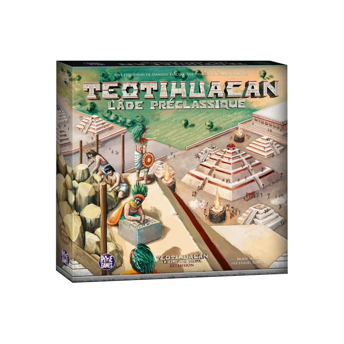 Teotihuacan – Extension L’Age Préclassique est une extension modulaire qui introduit plusieurs nouvelles options pour enrichir et élargir l’expérience de jeu. Les pouvoirs asymétriques des joueurs donnent à chaque joueur un avantage unique. Un prestigieux quatrième temple permet de débloquer des capacités puissantes et permanentes, tout en étant beaucoup plus difficile d’avancer. Les effets variables ont un impact à chaque saison et éclipse. De nouvelles techniques d’ingénierie et des plans renouvelés pour embellir la pyramide centrale du Soleil offrent de nouveaux défis et possibilités.