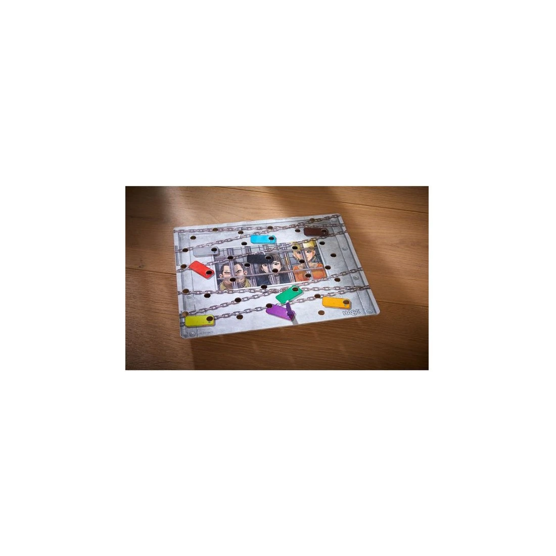 - Lorsque les autres joueurs finissent de résoudre l’affaire en trouvant à leur tour une combinaison de 4 chiffres, le joueur avec la clé l’enfonce dans la serrure correspondante sur le carton des solutions. La couleur au verso est bien la même ? L’affaire est résolue !
