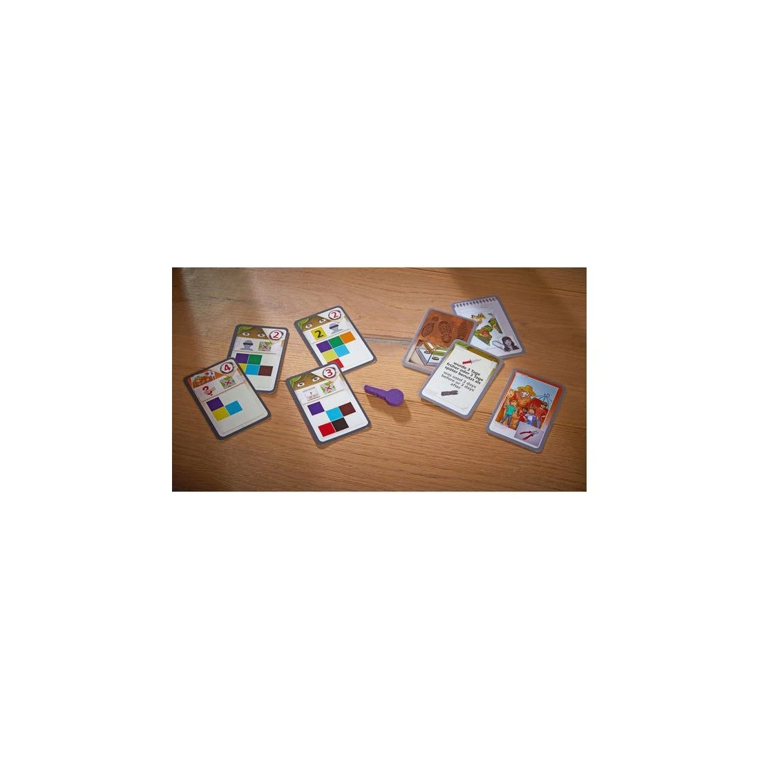 - Tout le monde enquête en même temps : ne prenez sur la table que des cartes portant la couleur de la clé !