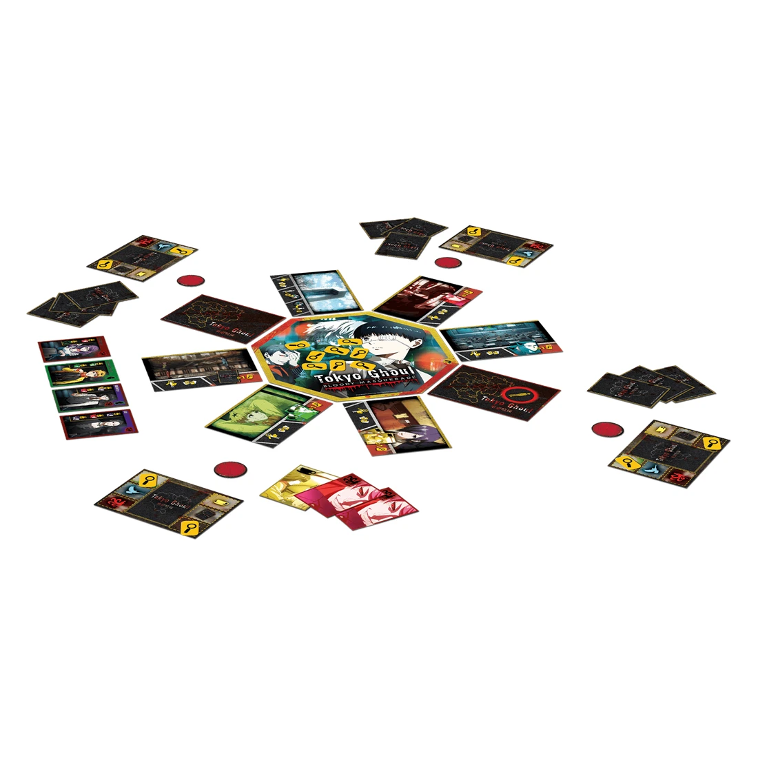 À Tokyo, sévissent des goules, monstres cannibales se nourrissant de chair humaine. Les humains sont des proies faciles mais les inspecteurs du redoutable Centre de Contrôle des Goules (Ccg) veillent. Leur mission : repérer et anéantir les goules ! Dans ce jeu de déduction et de bluff, incarnez 15 personnages de la série dont Kaneki, Touka, Juzo et Rize.