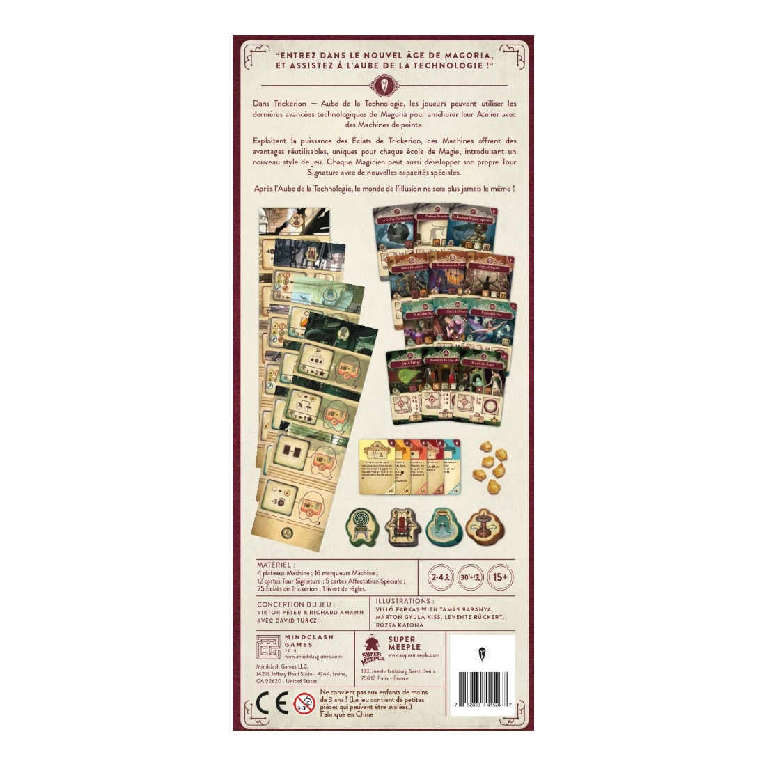 Trickerion : L’aube de la technologie est une extension accessible dès l’âge de 14 ans pour des parties de 120 minutes environ avec de 2 à 4 joueurs. Elle est édité par Super Meeple.Référence Super Meeple : JDPSMP050